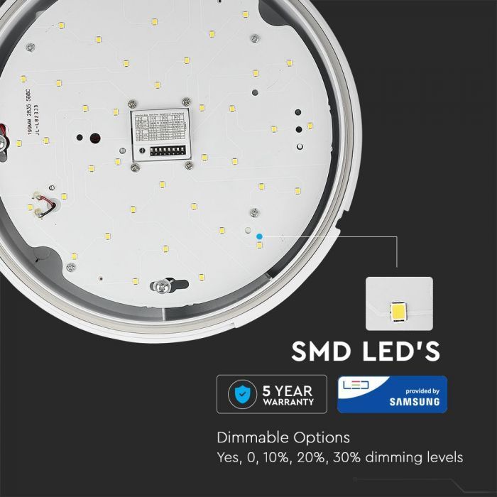 Stropna lampa 15W 3000K sa senzorom Samsung čip IP65 okrugla